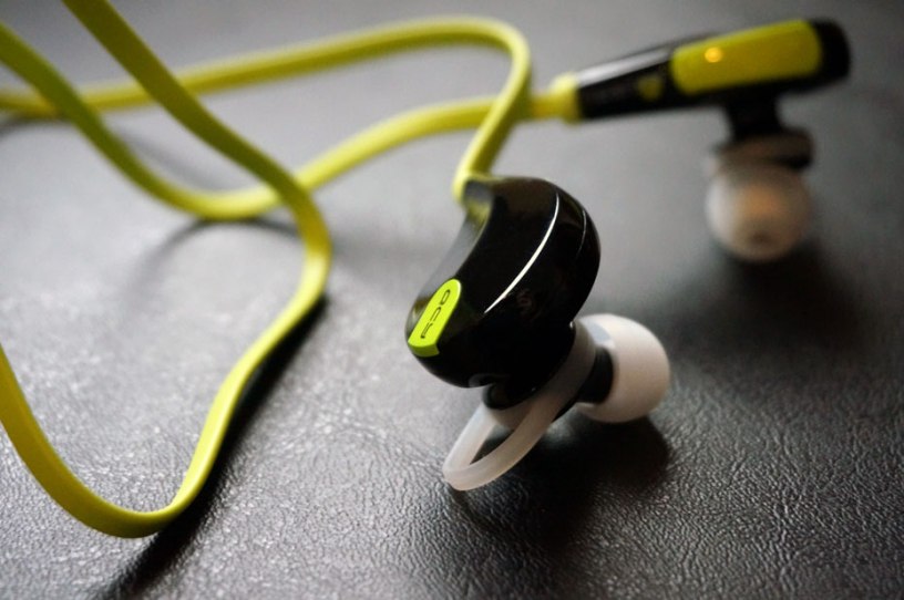 For the most part, this headset fits into my ears well. There are three different size eartips — small, medium and large. They are not uncomfortable, but I found that it took some time getting used to the 22” long cord rubbing at the back of my neck. There’s a little clip you can put on the cord to tighten up and shorten the distance between the two ear pieces, and I found this helped keep it from flopping to one side. Personally, I would have liked a shorter cord, but the clip does a decent job of shortening it.