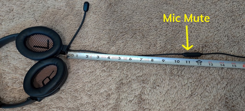 There isn’t a mute button on the controller. I wish Bose would have programmed it so that pressing on the analog dial would act as a mute, but instead, they put the mute on the headphone cord.