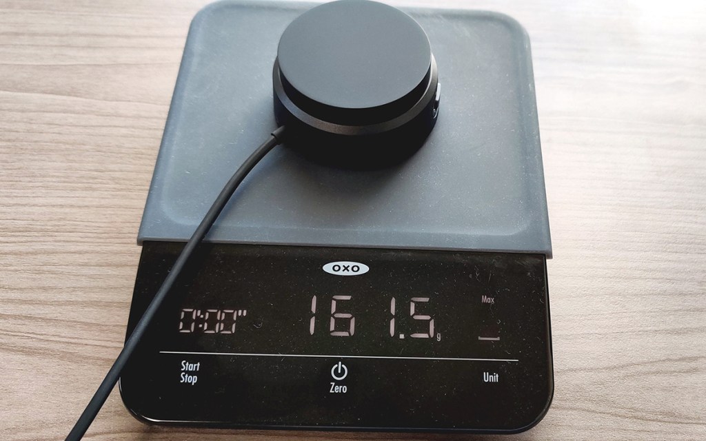 There’s no adhesive like some other desktop controllers I’ve had, instead, it relies on weight and a rubbery bottom. I weighed it at 161.5 grams. The rubbery ring at the bottom adds a fair amount of friction as well as scratch resistance. With these things combined, I find the desktop controller stays in place pretty well. Unless you give it a good bump.