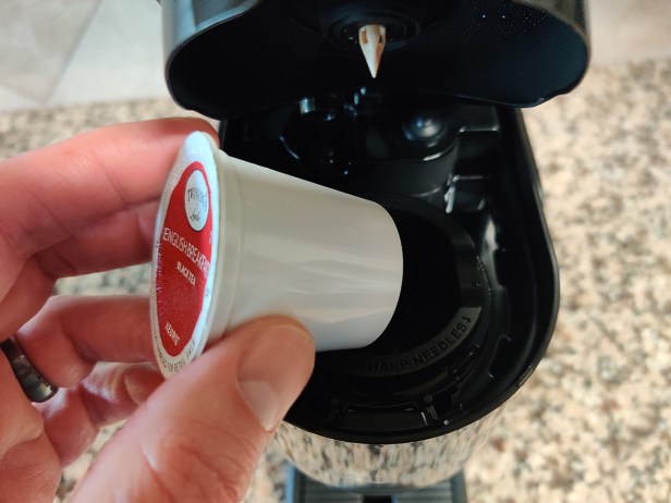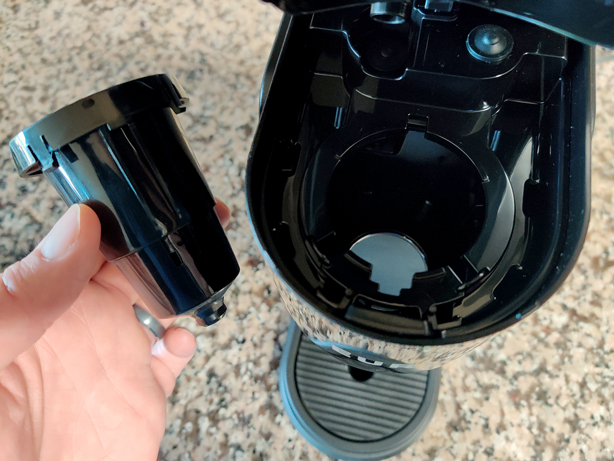 Thankfully this unit uses the same standard holder that their oldest units have. This is the part the k-cup goes into with the exit needle. What makes this old-but-still-useful holder nice is that (1) you can easily remove it to clean, and (2) you can swap it out depending on what you’re brewing. For instance, I personally don’t like the taste of coffee. I use it for tea and sometimes hot water. To keep my tea or water from tasting like coffee, I simply remove the holder my wife uses and insert my own. This way I get clean tasting water every time with no coffee cross-contamination. While it only comes with one, additional holders are inexpensive and easy to obtain. I personally use ones from my older units that have passed away.