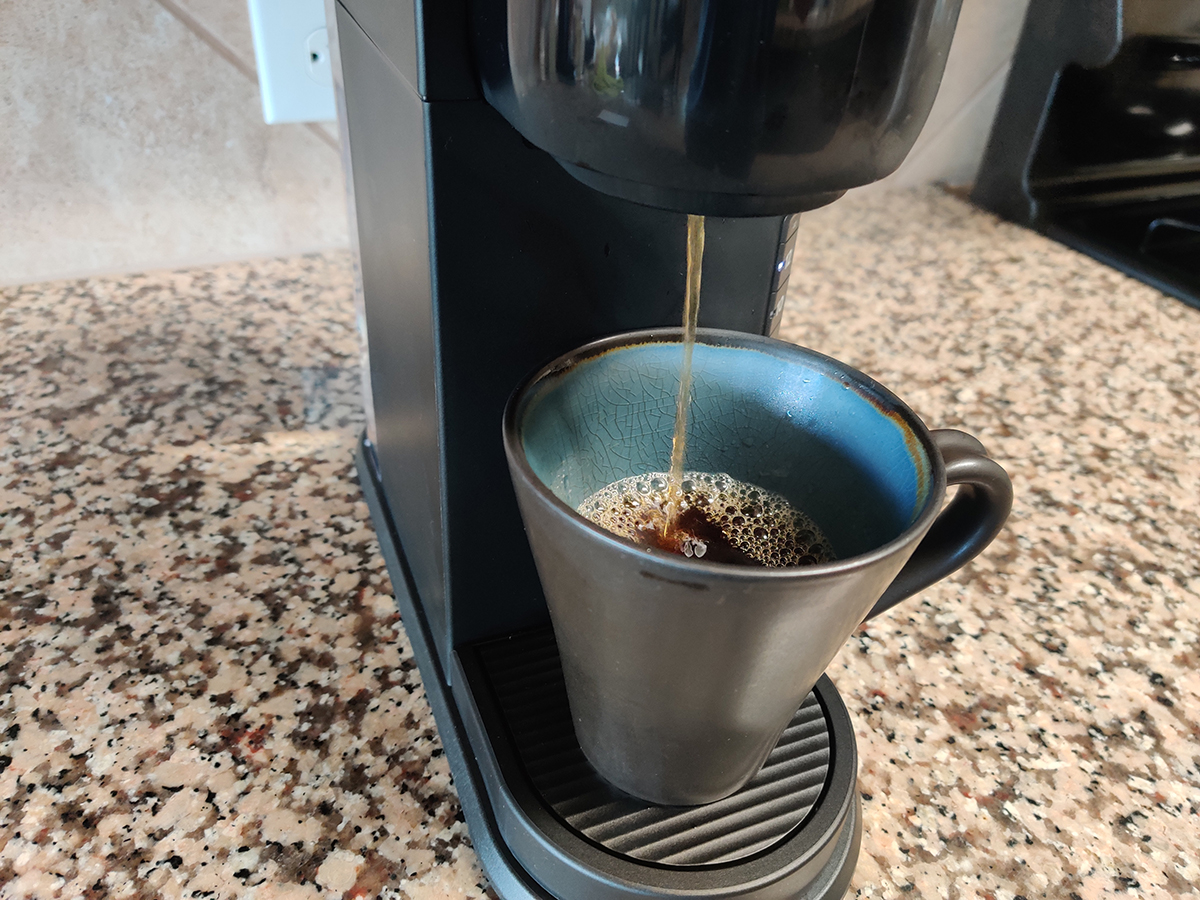 Unfortunately, one thing this K-Express lacks that the K-Mini had is a hideaway compartment for the power cord. That means you may have excess cord laying out between the maker and the wall socket, which looks sloppy. To help tidy up the cord, I kept the twist tie it came with. But it’s not as nice as having a hideaway compartment. With the reservoir at the back, I did find this unit sticks out more on our counter. The width is about the same, but length measures over a foot at around 13-inches.